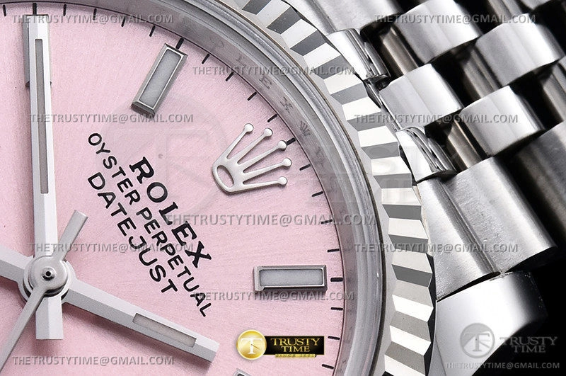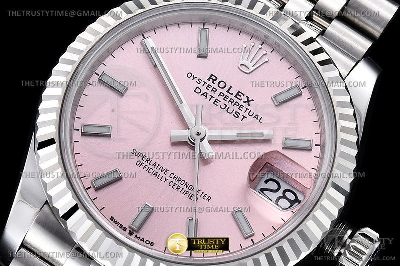 Часы Rolex из коллекции DateJust. Классические женские часы Rolex DateJust 31mm 278274-0014 премиального качества (Артикул магазина: RX-2110) оснащены надежным автоматическим механизмом с автоподзаводом (работает от амплитуды движения руки) калибра ETA2688, в котором реализованы следующие функции: часовая, минутная и секундная стрелки, а так же дата. Круглый корпус часов стального цвета, имеющий размер 31 мм и высоту 12 мм превосходно дополнит образ и украсит запястье своего обладателя. Для изготовления часов Rolex DateJust 31mm 278274-0014 предлагаемых в нашем интернет-магазине, применяются нержавеющая сталь 904L высокого качества (Швейцарский стандарт), а так же сапфировое стекло высокой прочности, благодаря чему обеспечивается максимальная защита от сколов и механических повреждений. Отличительной чертой данной модели является розовый циферблат, часовые индексы которого обеспечивают часовые метки. Завершает образ браслет из нержавеющей стали стального цвета с фирменной раскладывающейся застежкой Rolex. Водонепроницаемость данной модели составляет 30М (WR30) – допускается минимальное воздействие с водой.