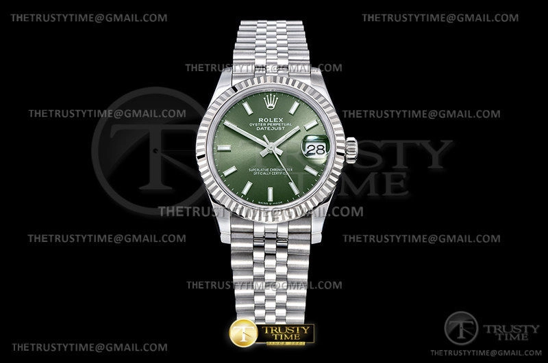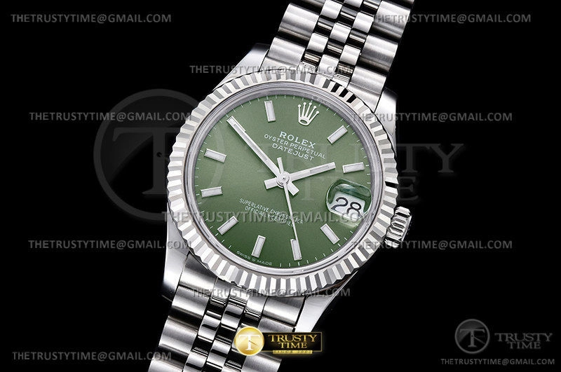 Часы Rolex из коллекции DateJust. Классические женские часы Rolex DateJust 31mm 278274-0018 премиального качества (Артикул магазина: RX-2112) оснащены надежным автоматическим механизмом с автоподзаводом (работает от амплитуды движения руки) калибра ETA2688, в котором реализованы следующие функции: часовая, минутная и секундная стрелки, а так же дата. Круглый корпус часов стального цвета, имеющий размер 31 мм и высоту 12 мм превосходно дополнит образ и украсит запястье своего обладателя. Для изготовления часов Rolex DateJust 31mm 278274-0018 предлагаемых в нашем интернет-магазине, применяются нержавеющая сталь 904L высокого качества (Швейцарский стандарт), а так же сапфировое стекло высокой прочности, благодаря чему обеспечивается максимальная защита от сколов и механических повреждений. Отличительной чертой данной модели является зеленый циферблат, часовые индексы которого обеспечивают часовые метки. Завершает образ браслет из нержавеющей стали стального цвета с фирменной раскладывающейся застежкой Rolex. Водонепроницаемость данной модели составляет 30М (WR30) – допускается минимальное воздействие с водой.