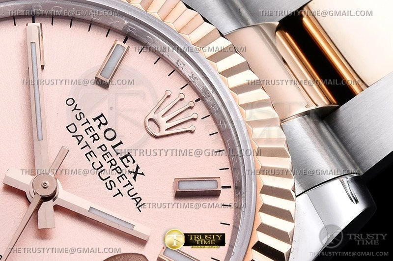 Часы Rolex из коллекции DateJust. Классические женские часы Rolex DateJust 31mm 278271-0009 премиального качества (Артикул магазина: RX-2278) оснащены надежным автоматическим механизмом с автоподзаводом (работает от амплитуды движения руки) калибра ETA2824-2, в котором реализованы следующие функции: часовая, минутная и секундная стрелки, а так же дата. Круглый корпус часов комбинированного сталь с розового золота цвета, имеющий размер 31 мм и высоту 12 мм превосходно дополнит образ и украсит запястье своего обладателя. Для изготовления часов Rolex DateJust 31mm 278271-0009 предлагаемых в нашем интернет-магазине, применяются нержавеющая сталь 904L высокого качества (Швейцарский стандарт), а так же сапфировое стекло высокой прочности, благодаря чему обеспечивается максимальная защита от сколов и механических повреждений. Отличительной чертой данной модели является розовый циферблат, часовые индексы которого обеспечивают часовые метки. Завершает образ браслет из нержавеющей стали комбинированного сталь с розовым золотом цвета с фирменной раскладывающейся застежкой Rolex. Водонепроницаемость данной модели составляет 30М (WR30) – допускается минимальное воздействие с водой.
