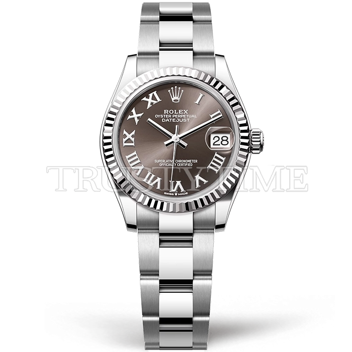 Часы Rolex из коллекции DateJust. Классические женские часы Rolex DateJust 31mm 278274-0021 премиального качества (Артикул магазина: RX-3025) оснащены надежным автоматическим механизмом с автоподзаводом (работает от амплитуды движения руки) калибра ETA2688, в котором реализованы следующие функции: часовая, минутная и секундная стрелки, а так же дата. Круглый корпус часов стального цвета, имеющий размер 31 мм и высоту 12 мм превосходно дополнит образ и украсит запястье своего обладателя. Для изготовления часов Rolex DateJust 31mm 278274-0021 предлагаемых в нашем интернет-магазине, применяются нержавеющая сталь 904L высокого качества (Швейцарский стандарт), а так же сапфировое стекло высокой прочности, благодаря чему обеспечивается максимальная защита от сколов и механических повреждений. Отличительной чертой данной модели является серый циферблат, часовые индексы которого обеспечивают римские цифры. Завершает образ браслет из нержавеющей стали стального цвета с фирменной раскладывающейся застежкой Rolex. Водонепроницаемость данной модели составляет 30М (WR30) – допускается минимальное воздействие с водой.
