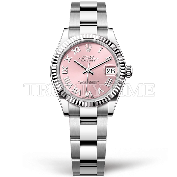Часы Rolex из коллекции DateJust. Классические женские часы Rolex DateJust 31mm 278274-0019 премиального качества (Артикул магазина: RX-3038) оснащены надежным автоматическим механизмом с автоподзаводом (работает от амплитуды движения руки) калибра ETA2688, в котором реализованы следующие функции: часовая, минутная и секундная стрелки, а так же дата. Круглый корпус часов стального цвета, имеющий размер 31 мм и высоту 12 мм превосходно дополнит образ и украсит запястье своего обладателя. Для изготовления часов Rolex DateJust 31mm 278274-0019 предлагаемых в нашем интернет-магазине, применяются нержавеющая сталь 904L высокого качества (Швейцарский стандарт), а так же сапфировое стекло высокой прочности, благодаря чему обеспечивается максимальная защита от сколов и механических повреждений. Отличительной чертой данной модели является розовый циферблат, часовые индексы которого обеспечивают римские цифры. Завершает образ браслет из нержавеющей стали стального цвета с фирменной раскладывающейся застежкой Rolex. Водонепроницаемость данной модели составляет 30М (WR30) – допускается минимальное воздействие с водой.