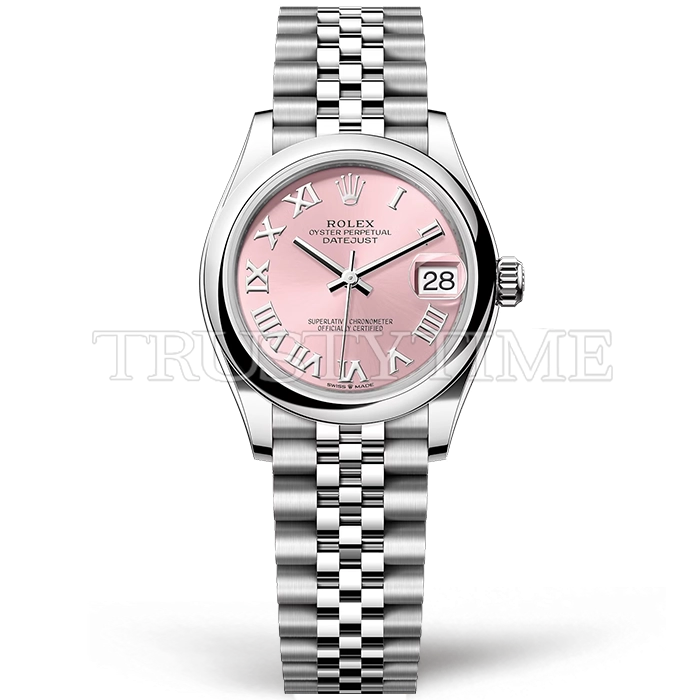 Часы Rolex из коллекции DateJust. Классические женские часы Rolex DateJust 31mm 278240-0014 премиального качества (Артикул магазина: RX-3039) оснащены надежным автоматическим механизмом с автоподзаводом (работает от амплитуды движения руки) калибра ETA2688, в котором реализованы следующие функции: часовая, минутная и секундная стрелки, а так же дата. Круглый корпус часов стального цвета, имеющий размер 31 мм и высоту 12 мм превосходно дополнит образ и украсит запястье своего обладателя. Для изготовления часов Rolex DateJust 31mm 278240-0014 предлагаемых в нашем интернет-магазине, применяются нержавеющая сталь 904L высокого качества (Швейцарский стандарт), а так же сапфировое стекло высокой прочности, благодаря чему обеспечивается максимальная защита от сколов и механических повреждений. Отличительной чертой данной модели является розовый циферблат, часовые индексы которого обеспечивают римские цифры. Завершает образ браслет из нержавеющей стали стального цвета с фирменной раскладывающейся застежкой Rolex. Водонепроницаемость данной модели составляет 30М (WR30) – допускается минимальное воздействие с водой.