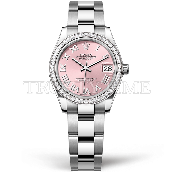 Часы Rolex из коллекции DateJust. Классические женские часы Rolex DateJust 31mm 278384RBR-0023 премиального качества (Артикул магазина: RX-3045) оснащены надежным автоматическим механизмом с автоподзаводом (работает от амплитуды движения руки) калибра ETA2688, в котором реализованы следующие функции: часовая, минутная и секундная стрелки, а так же дата. Круглый корпус часов стального цвета, имеющий размер 31 мм и высоту 12 мм превосходно дополнит образ и украсит запястье своего обладателя. Для изготовления часов Rolex DateJust 31mm 278384RBR-0023 предлагаемых в нашем интернет-магазине, применяются нержавеющая сталь 904L высокого качества (Швейцарский стандарт), а так же сапфировое стекло высокой прочности, благодаря чему обеспечивается максимальная защита от сколов и механических повреждений. Отличительной чертой данной модели является розовый циферблат, часовые индексы которого обеспечивают римские цифры. Завершает образ браслет из нержавеющей стали стального цвета с фирменной раскладывающейся застежкой Rolex. Водонепроницаемость данной модели составляет 30М (WR30) – допускается минимальное воздействие с водой.