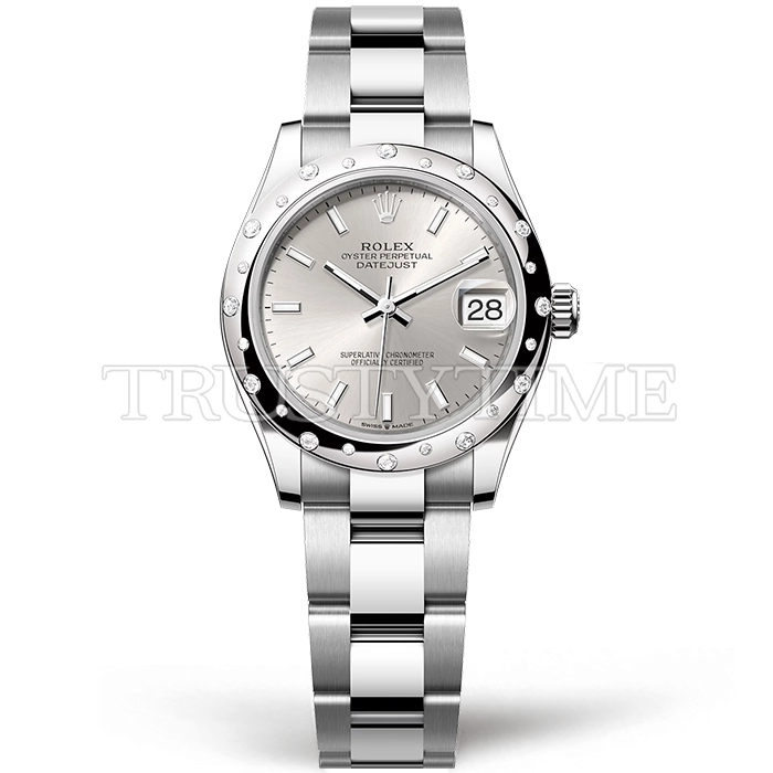 Часы Rolex из коллекции DateJust. Классические женские часы Rolex DateJust 31mm 278344RBR-0013 премиального качества (Артикул магазина: RX-3069) оснащены надежным автоматическим механизмом с автоподзаводом (работает от амплитуды движения руки) калибра ETA2688, в котором реализованы следующие функции: часовая, минутная и секундная стрелки, а так же дата. Круглый корпус часов стального цвета, имеющий размер 31 мм и высоту 12 мм превосходно дополнит образ и украсит запястье своего обладателя. Для изготовления часов Rolex DateJust 31mm 278344RBR-0013 предлагаемых в нашем интернет-магазине, применяются нержавеющая сталь 904L высокого качества (Швейцарский стандарт), а так же сапфировое стекло высокой прочности, благодаря чему обеспечивается максимальная защита от сколов и механических повреждений. Отличительной чертой данной модели является серебристый циферблат, часовые индексы которого обеспечивают часовые метки. Завершает образ браслет из нержавеющей стали стального цвета с фирменной раскладывающейся застежкой Rolex. Водонепроницаемость данной модели составляет 30М (WR30) – допускается минимальное воздействие с водой.