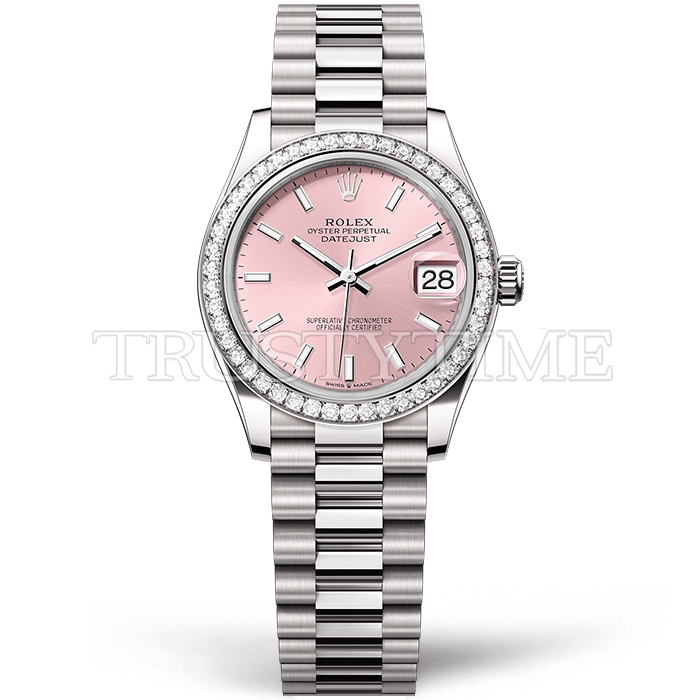 Часы Rolex из коллекции DateJust. Классические женские часы Rolex DateJust 31mm 278289RBR-0013 премиального качества (Артикул магазина: RX-3075) оснащены надежным автоматическим механизмом с автоподзаводом (работает от амплитуды движения руки) калибра ETA2688, в котором реализованы следующие функции: часовая, минутная и секундная стрелки, а так же дата. Круглый корпус часов стального цвета, имеющий размер 31 мм и высоту 12 мм превосходно дополнит образ и украсит запястье своего обладателя. Для изготовления часов Rolex DateJust 31mm 278289RBR-0013 предлагаемых в нашем интернет-магазине, применяются нержавеющая сталь 904L высокого качества (Швейцарский стандарт), а так же сапфировое стекло высокой прочности, благодаря чему обеспечивается максимальная защита от сколов и механических повреждений. Отличительной чертой данной модели является розовый циферблат, часовые индексы которого обеспечивают часовые метки. Завершает образ браслет из нержавеющей стали стального цвета с фирменной раскладывающейся застежкой Rolex. Водонепроницаемость данной модели составляет 30М (WR30) – допускается минимальное воздействие с водой.