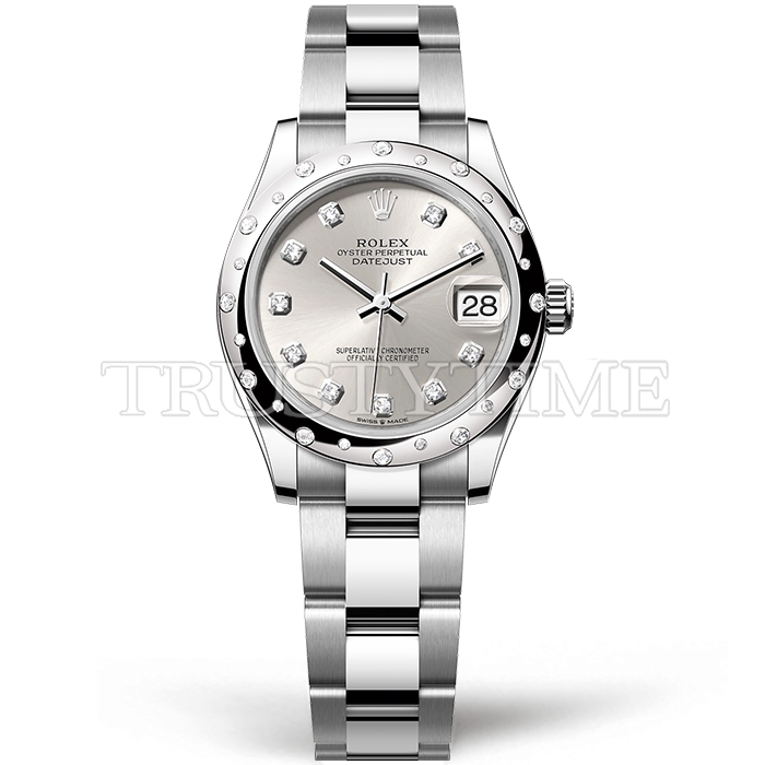 Часы Rolex из коллекции DateJust. Классические женские часы Rolex DateJust 31mm 278344RBR-0031 премиального качества (Артикул магазина: RX-3095) оснащены надежным автоматическим механизмом с автоподзаводом (работает от амплитуды движения руки) калибра ETA2688, в котором реализованы следующие функции: часовая, минутная и секундная стрелки, а так же дата. Круглый корпус часов стального цвета, имеющий размер 31 мм и высоту 12 мм превосходно дополнит образ и украсит запястье своего обладателя. Для изготовления часов Rolex DateJust 31mm 278344RBR-0031 предлагаемых в нашем интернет-магазине, применяются нержавеющая сталь 904L высокого качества (Швейцарский стандарт), а так же сапфировое стекло высокой прочности, благодаря чему обеспечивается максимальная защита от сколов и механических повреждений. Отличительной чертой данной модели является серебристый циферблат, часовые индексы которого обеспечивают камни. Завершает образ браслет из нержавеющей стали стального цвета с фирменной раскладывающейся застежкой Rolex. Водонепроницаемость данной модели составляет 30М (WR30) – допускается минимальное воздействие с водой.