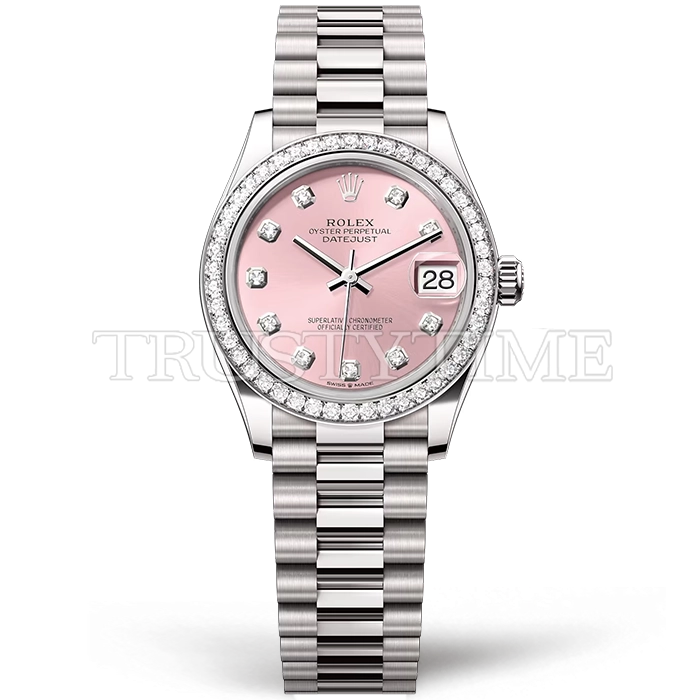Часы Rolex из коллекции DateJust. Классические женские часы Rolex DateJust 31mm 278289RBR-0022 премиального качества (Артикул магазина: RX-3099) оснащены надежным автоматическим механизмом с автоподзаводом (работает от амплитуды движения руки) калибра ETA2688, в котором реализованы следующие функции: часовая, минутная и секундная стрелки, а так же дата. Круглый корпус часов стального цвета, имеющий размер 31 мм и высоту 12 мм превосходно дополнит образ и украсит запястье своего обладателя. Для изготовления часов Rolex DateJust 31mm 278289RBR-0022 предлагаемых в нашем интернет-магазине, применяются нержавеющая сталь 904L высокого качества (Швейцарский стандарт), а так же сапфировое стекло высокой прочности, благодаря чему обеспечивается максимальная защита от сколов и механических повреждений. Отличительной чертой данной модели является розовый циферблат, часовые индексы которого обеспечивают камни. Завершает образ браслет из нержавеющей стали стального цвета с фирменной раскладывающейся застежкой Rolex. Водонепроницаемость данной модели составляет 30М (WR30) – допускается минимальное воздействие с водой.