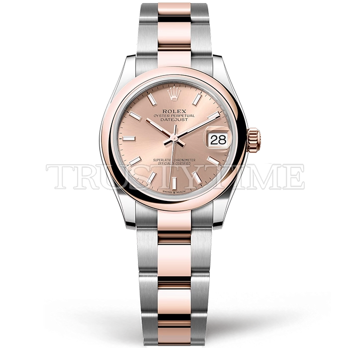 Часы Rolex из коллекции DateJust. Классические женские часы Rolex DateJust 31mm 278241-0009 премиального качества (Артикул магазина: RX-3153) оснащены надежным автоматическим механизмом с автоподзаводом (работает от амплитуды движения руки) калибра ETA2824-2, в котором реализованы следующие функции: часовая, минутная и секундная стрелки, а так же дата. Круглый корпус часов комбинированного сталь с розового золота цвета, имеющий размер 31 мм и высоту 12 мм превосходно дополнит образ и украсит запястье своего обладателя. Для изготовления часов Rolex DateJust 31mm 278241-0009 предлагаемых в нашем интернет-магазине, применяются нержавеющая сталь 904L высокого качества (Швейцарский стандарт), а так же сапфировое стекло высокой прочности, благодаря чему обеспечивается максимальная защита от сколов и механических повреждений. Отличительной чертой данной модели является розовый циферблат, часовые индексы которого обеспечивают часовые метки. Завершает образ браслет из нержавеющей стали комбинированного сталь с розовым золотом цвета с фирменной раскладывающейся застежкой Rolex. Водонепроницаемость данной модели составляет 30М (WR30) – допускается минимальное воздействие с водой.