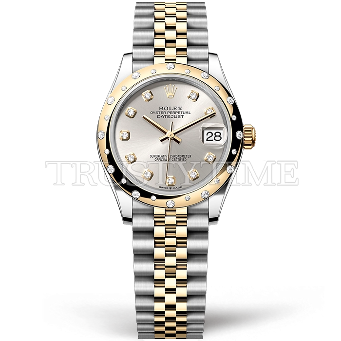 Часы Rolex из коллекции DateJust. Классические женские часы Rolex DateJust 31mm 278343RBR-0020 премиального качества (Артикул магазина: RX-3236) оснащены надежным автоматическим механизмом с автоподзаводом (работает от амплитуды движения руки) калибра ETA2836-2, в котором реализованы следующие функции: часовая, минутная и секундная стрелки, а так же дата. Круглый корпус часов комбинированного сталь с желтого золота цвета, имеющий размер 31 мм и высоту 12 мм превосходно дополнит образ и украсит запястье своего обладателя. Для изготовления часов Rolex DateJust 31mm 278343RBR-0020 предлагаемых в нашем интернет-магазине, применяются нержавеющая сталь 316F высокого качества (Швейцарский стандарт), а так же сапфировое стекло высокой прочности, благодаря чему обеспечивается максимальная защита от сколов и механических повреждений. Отличительной чертой данной модели является серебристый циферблат, часовые индексы которого обеспечивают камни. Завершает образ браслет из нержавеющей стали комбинированного сталь с желтым золотом цвета с фирменной раскладывающейся застежкой Rolex. Водонепроницаемость данной модели составляет 30М (WR30) – допускается минимальное воздействие с водой.