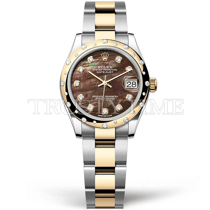Часы Rolex из коллекции DateJust. Классические женские часы Rolex DateJust 31mm 278343RBR-0023 премиального качества (Артикул магазина: RX-3247) оснащены надежным автоматическим механизмом с автоподзаводом (работает от амплитуды движения руки) калибра ETA2824-2, в котором реализованы следующие функции: часовая, минутная и секундная стрелки, а так же дата. Круглый корпус часов комбинированного сталь с желтого золота цвета, имеющий размер 31 мм и высоту 12 мм превосходно дополнит образ и украсит запястье своего обладателя. Для изготовления часов Rolex DateJust 31mm 278343RBR-0023 предлагаемых в нашем интернет-магазине, применяются нержавеющая сталь 316F высокого качества (Швейцарский стандарт), а так же сапфировое стекло высокой прочности, благодаря чему обеспечивается максимальная защита от сколов и механических повреждений. Отличительной чертой данной модели является коричневый циферблат, часовые индексы которого обеспечивают камни. Завершает образ браслет из нержавеющей стали комбинированного сталь с желтым золотом цвета с фирменной раскладывающейся застежкой Rolex. Водонепроницаемость данной модели составляет 30М (WR30) – допускается минимальное воздействие с водой.