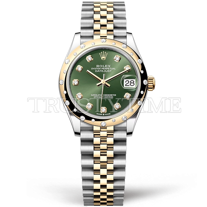 Часы Rolex из коллекции DateJust. Классические женские часы Rolex DateJust 31mm 278343RBR-0030 премиального качества (Артикул магазина: RX-3260) оснащены надежным автоматическим механизмом с автоподзаводом (работает от амплитуды движения руки) калибра ETA2836-2, в котором реализованы следующие функции: часовая, минутная и секундная стрелки, а так же дата. Круглый корпус часов комбинированного сталь с желтого золота цвета, имеющий размер 31 мм и высоту 12 мм превосходно дополнит образ и украсит запястье своего обладателя. Для изготовления часов Rolex DateJust 31mm 278343RBR-0030 предлагаемых в нашем интернет-магазине, применяются нержавеющая сталь 316F высокого качества (Швейцарский стандарт), а так же сапфировое стекло высокой прочности, благодаря чему обеспечивается максимальная защита от сколов и механических повреждений. Отличительной чертой данной модели является зеленый циферблат, часовые индексы которого обеспечивают камни. Завершает образ браслет из нержавеющей стали комбинированного сталь с желтым золотом цвета с фирменной раскладывающейся застежкой Rolex. Водонепроницаемость данной модели составляет 30М (WR30) – допускается минимальное воздействие с водой.