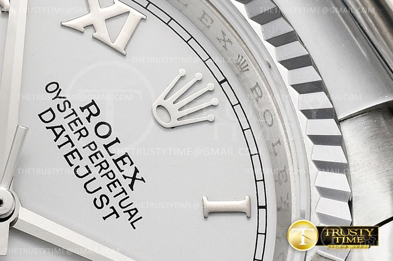 Часы Rolex из коллекции DateJust. Классические женские часы Rolex DateJust 36mm 116234-0090 премиального качества (Артикул магазина: RX-0448) оснащены надежным автоматическим механизмом с автоподзаводом (работает от амплитуды движения руки) калибра 3135, в котором реализованы следующие функции: часовая, минутная и секундная стрелки, а так же дата. Круглый корпус часов стального цвета, имеющий размер 36 мм и высоту 12 мм превосходно дополнит образ и украсит запястье своего обладателя. Для изготовления часов Rolex DateJust 36mm 116234-0090 предлагаемых в нашем интернет-магазине, применяются нержавеющая сталь 316F высокого качества (Швейцарский стандарт), а так же сапфировое стекло высокой прочности, благодаря чему обеспечивается максимальная защита от сколов и механических повреждений. Отличительной чертой данной модели является белый циферблат, часовые индексы которого обеспечивают римские цифры. Завершает образ браслет из нержавеющей стали стального цвета с фирменной раскладывающейся застежкой Rolex. Водонепроницаемость данной модели составляет 30М (WR30) – допускается минимальное воздействие с водой.