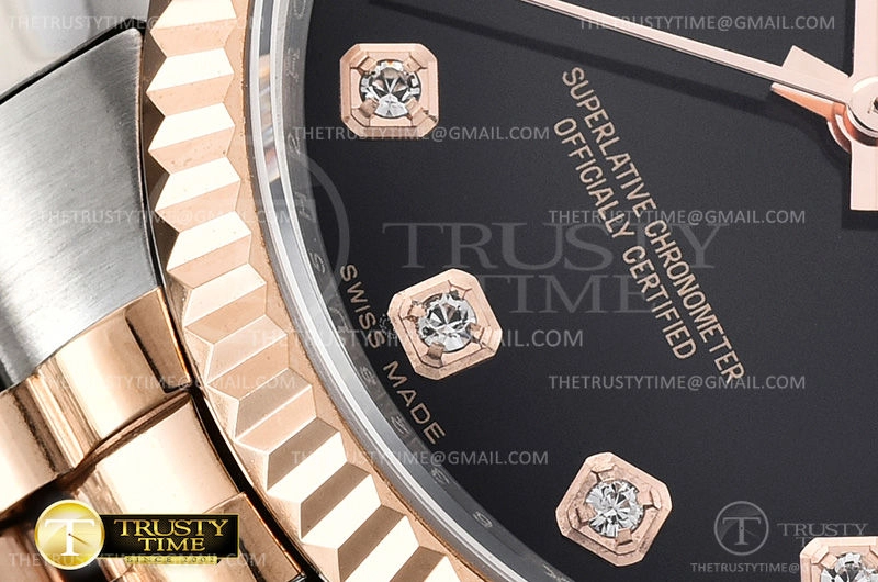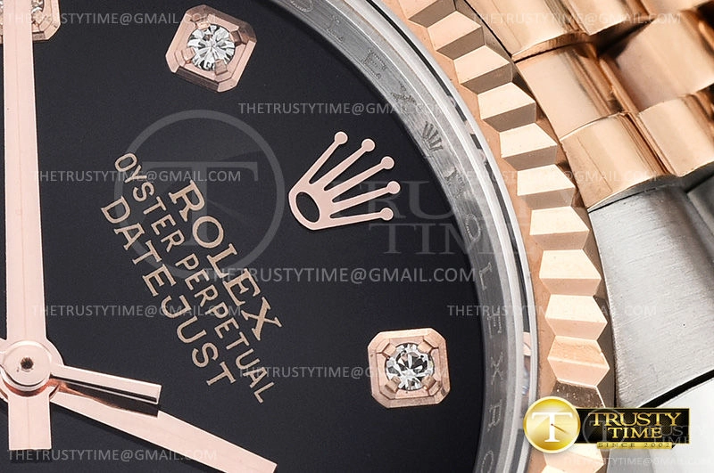 Часы Rolex из коллекции DateJust. Классические женские часы Rolex DateJust 36mm 116231-0056 премиального качества (Артикул магазина: RX-0436) оснащены надежным автоматическим механизмом с автоподзаводом (работает от амплитуды движения руки) калибра 3135, в котором реализованы следующие функции: часовая, минутная и секундная стрелки, а так же дата. Круглый корпус часов комбинированного сталь с розового золота цвета, имеющий размер 36 мм и высоту 12 мм превосходно дополнит образ и украсит запястье своего обладателя. Для изготовления часов Rolex DateJust 36mm 116231-0056 предлагаемых в нашем интернет-магазине, применяются нержавеющая сталь 316F высокого качества (Швейцарский стандарт), а так же сапфировое стекло высокой прочности, благодаря чему обеспечивается максимальная защита от сколов и механических повреждений. Отличительной чертой данной модели является черный циферблат, часовые индексы которого обеспечивают камни. Завершает образ браслет из нержавеющей стали комбинированного сталь с розовым золотом цвета с фирменной раскладывающейся застежкой Rolex. Водонепроницаемость данной модели составляет 30М (WR30) – допускается минимальное воздействие с водой.