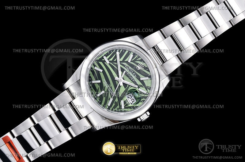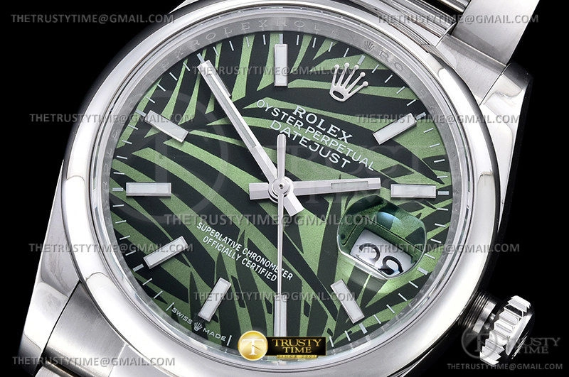 Часы Rolex из коллекции DateJust. Классические женские часы Rolex DateJust 36mm 126200-0020 премиального качества (Артикул магазина: RX-2088) оснащены надежным автоматическим механизмом с автоподзаводом (работает от амплитуды движения руки) калибра 3235, в котором реализованы следующие функции: часовая, минутная и секундная стрелки, а так же дата. Круглый корпус часов стального цвета, имеющий размер 36 мм и высоту 12 мм превосходно дополнит образ и украсит запястье своего обладателя. Для изготовления часов Rolex DateJust 36mm 126200-0020 предлагаемых в нашем интернет-магазине, применяются нержавеющая сталь 904L высокого качества (Швейцарский стандарт), а так же сапфировое стекло высокой прочности, благодаря чему обеспечивается максимальная защита от сколов и механических повреждений. Отличительной чертой данной модели является зеленый циферблат, часовые индексы которого обеспечивают часовые метки. Завершает образ браслет из нержавеющей стали стального цвета с фирменной раскладывающейся застежкой Rolex. Водонепроницаемость данной модели составляет 30М (WR30) – допускается минимальное воздействие с водой.