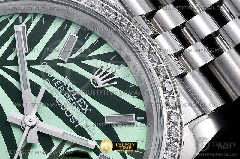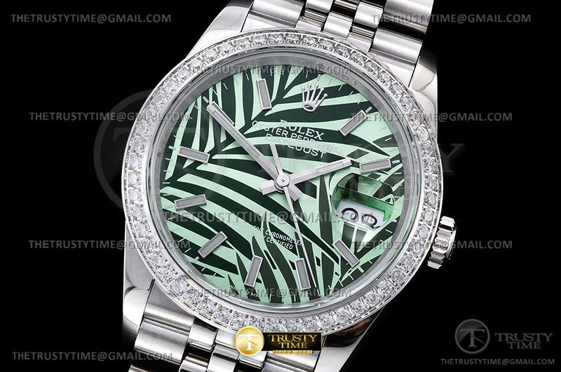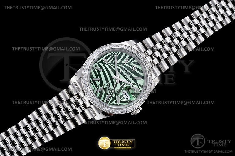 Часы Rolex из коллекции DateJust. Классические женские часы Rolex DateJust 36mm 126284RBR-0039 премиального качества (Артикул магазина: RX-2086) оснащены надежным автоматическим механизмом с автоподзаводом (работает от амплитуды движения руки) калибра 3235, в котором реализованы следующие функции: часовая, минутная и секундная стрелки, а так же дата. Круглый корпус часов стального цвета, имеющий размер 36 мм и высоту 12 мм превосходно дополнит образ и украсит запястье своего обладателя. Для изготовления часов Rolex DateJust 36mm 126284RBR-0039 предлагаемых в нашем интернет-магазине, применяются нержавеющая сталь 316L высокого качества (Швейцарский стандарт), а так же сапфировое стекло высокой прочности, благодаря чему обеспечивается максимальная защита от сколов и механических повреждений. Отличительной чертой данной модели является зеленый циферблат, часовые индексы которого обеспечивают часовые метки. Завершает образ браслет из нержавеющей стали стального цвета с фирменной раскладывающейся застежкой Rolex. Водонепроницаемость данной модели составляет 30М (WR30) – допускается минимальное воздействие с водой.
