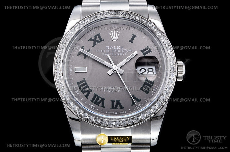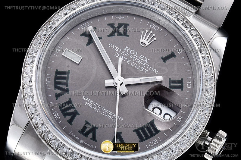 Часы Rolex из коллекции DateJust. Классические женские часы Rolex DateJust 36mm 126284RBR-0038 премиального качества (Артикул магазина: RX-2093) оснащены надежным автоматическим механизмом с автоподзаводом (работает от амплитуды движения руки) калибра 3235, в котором реализованы следующие функции: часовая, минутная и секундная стрелки, а так же дата. Круглый корпус часов стального цвета, имеющий размер 36 мм и высоту 12 мм превосходно дополнит образ и украсит запястье своего обладателя. Для изготовления часов Rolex DateJust 36mm 126284RBR-0038 предлагаемых в нашем интернет-магазине, применяются нержавеющая сталь 316L высокого качества (Швейцарский стандарт), а так же сапфировое стекло высокой прочности, благодаря чему обеспечивается максимальная защита от сколов и механических повреждений. Отличительной чертой данной модели является серый циферблат, часовые индексы которого обеспечивают римские цифры. Завершает образ браслет из нержавеющей стали стального цвета с фирменной раскладывающейся застежкой Rolex. Водонепроницаемость данной модели составляет 30М (WR30) – допускается минимальное воздействие с водой.