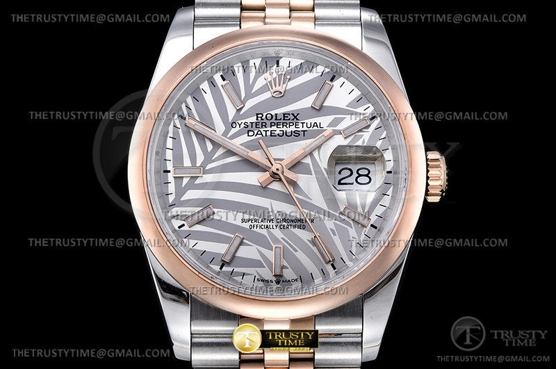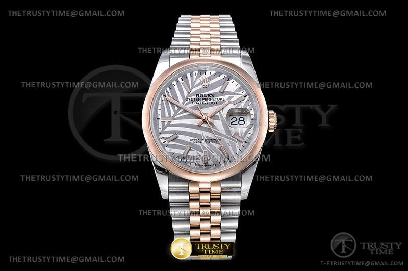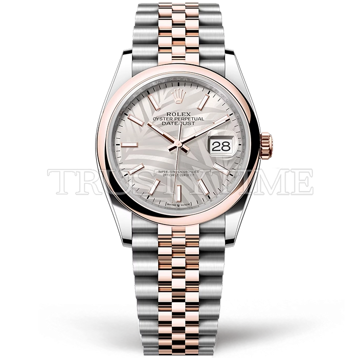Часы Rolex из коллекции DateJust. Классические женские часы Rolex DateJust 36mm 126201-0031 премиального качества (Артикул магазина: RX-2127) оснащены надежным автоматическим механизмом с автоподзаводом (работает от амплитуды движения руки) калибра 3235, в котором реализованы следующие функции: часовая, минутная и секундная стрелки, а так же дата. Круглый корпус часов комбинированного сталь с розового золота цвета, имеющий размер 36 мм и высоту 12 мм превосходно дополнит образ и украсит запястье своего обладателя. Для изготовления часов Rolex DateJust 36mm 126201-0031 предлагаемых в нашем интернет-магазине, применяются нержавеющая сталь 316L высокого качества (Швейцарский стандарт), а так же сапфировое стекло высокой прочности, благодаря чему обеспечивается максимальная защита от сколов и механических повреждений. Отличительной чертой данной модели является серебристый циферблат, часовые индексы которого обеспечивают часовые метки. Завершает образ браслет из нержавеющей стали комбинированного сталь с розовым золотом цвета с фирменной раскладывающейся застежкой Rolex. Водонепроницаемость данной модели составляет 30М (WR30) – допускается минимальное воздействие с водой.