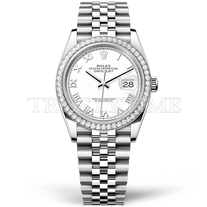 Часы Rolex из коллекции DateJust. Классические женские часы Rolex DateJust 36mm 126284RBR-0017 премиального качества (Артикул магазина: RX-2619) оснащены надежным автоматическим механизмом с автоподзаводом (работает от амплитуды движения руки) калибра 3135, в котором реализованы следующие функции: часовая, минутная и секундная стрелки, а так же дата. Круглый корпус часов стального цвета, имеющий размер 36 мм и высоту 12 мм превосходно дополнит образ и украсит запястье своего обладателя. Для изготовления часов Rolex DateJust 36mm 126284RBR-0017 предлагаемых в нашем интернет-магазине, применяются нержавеющая сталь 904L высокого качества (Швейцарский стандарт), а так же сапфировое стекло высокой прочности, благодаря чему обеспечивается максимальная защита от сколов и механических повреждений. Отличительной чертой данной модели является белый циферблат, часовые индексы которого обеспечивают римские цифры. Завершает образ браслет из нержавеющей стали стального цвета с фирменной раскладывающейся застежкой Rolex. Водонепроницаемость данной модели составляет 30М (WR30) – допускается минимальное воздействие с водой.
