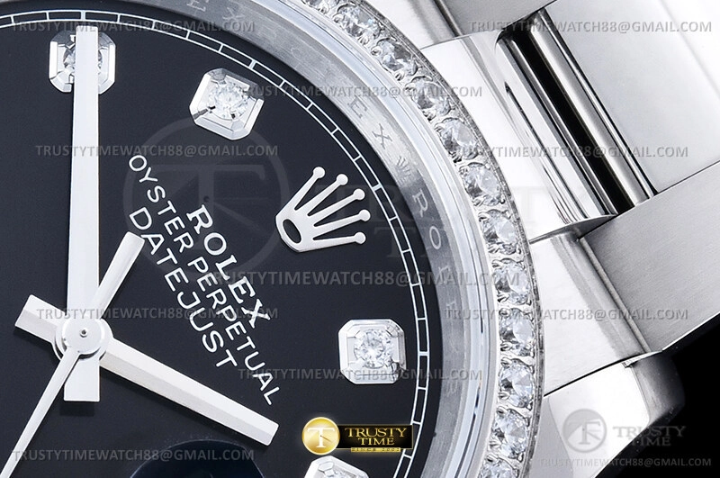 Часы Rolex из коллекции DateJust. Классические женские часы Rolex DateJust 36mm 126284RBR-0020 премиального качества (Артикул магазина: RX-2622) оснащены надежным автоматическим механизмом с автоподзаводом (работает от амплитуды движения руки) калибра 3235, в котором реализованы следующие функции: часовая, минутная и секундная стрелки, а так же дата. Круглый корпус часов стального цвета, имеющий размер 36 мм и высоту 11.6 мм превосходно дополнит образ и украсит запястье своего обладателя. Для изготовления часов Rolex DateJust 36mm 126284RBR-0020 предлагаемых в нашем интернет-магазине, применяются нержавеющая сталь 904L высокого качества (Швейцарский стандарт), а так же сапфировое стекло высокой прочности, благодаря чему обеспечивается максимальная защита от сколов и механических повреждений. Отличительной чертой данной модели является черный циферблат, часовые индексы которого обеспечивают камни. Завершает образ браслет из нержавеющей стали стального цвета с фирменной раскладывающейся застежкой Rolex. Водонепроницаемость данной модели составляет 30М (WR30) – допускается минимальное воздействие с водой.