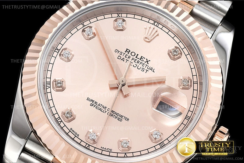 Часы Rolex из коллекции DateJust II. Классические мужские часы Rolex DateJust II 41mm 126331-0008 премиального качества (Артикул магазина: RX-0837) оснащены надежным автоматическим механизмом с автоподзаводом (работает от амплитуды движения руки) калибра 3235, в котором реализованы следующие функции: часовая, минутная и секундная стрелки, а так же дата. Круглый корпус часов комбинированного сталь с розового золота цвета, имеющий размер 41 мм и высоту 13 мм превосходно дополнит образ и украсит запястье своего обладателя. Для изготовления часов Rolex DateJust II 41mm 126331-0008 предлагаемых в нашем интернет-магазине, применяются нержавеющая сталь 316F высокого качества (Швейцарский стандарт), а так же сапфировое стекло высокой прочности, благодаря чему обеспечивается максимальная защита от сколов и механических повреждений. Отличительной чертой данной модели является золотой циферблат, часовые индексы которого обеспечивают камни. Завершает образ браслет из нержавеющей стали комбинированного сталь с розовым золотом цвета с фирменной раскладывающейся застежкой Rolex. Водонепроницаемость данной модели составляет 30М (WR30) – допускается минимальное воздействие с водой.