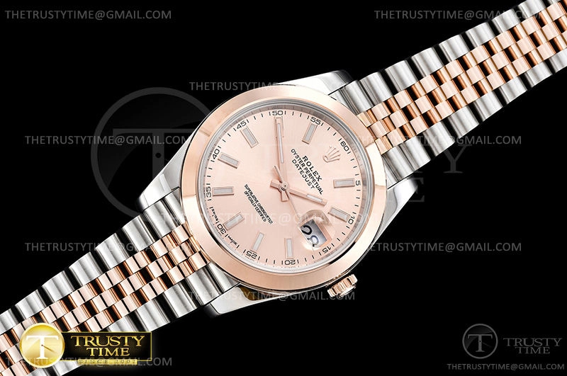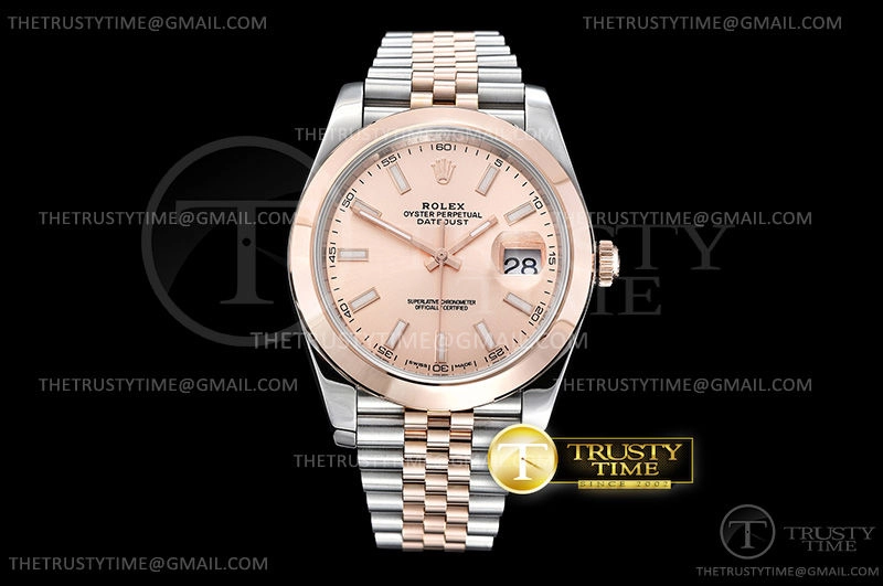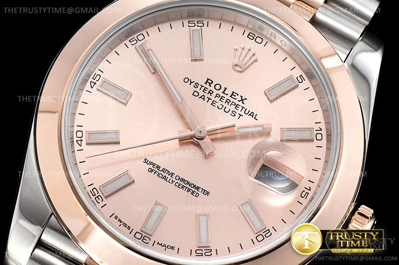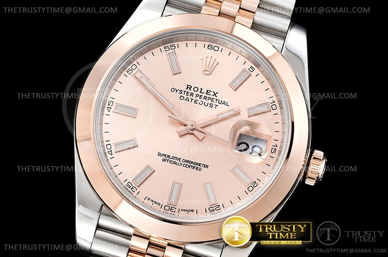 Часы Rolex из коллекции DateJust II. Классические мужские часы Rolex DateJust II 41mm 126301-0010 премиального качества (Артикул магазина: RX-0841) оснащены надежным автоматическим механизмом с автоподзаводом (работает от амплитуды движения руки) калибра 3235, в котором реализованы следующие функции: часовая, минутная и секундная стрелки, а так же дата. Круглый корпус часов комбинированного сталь с розового золота цвета, имеющий размер 41 мм и высоту 13 мм превосходно дополнит образ и украсит запястье своего обладателя. Для изготовления часов Rolex DateJust II 41mm 126301-0010 предлагаемых в нашем интернет-магазине, применяются нержавеющая сталь 316F высокого качества (Швейцарский стандарт), а так же сапфировое стекло высокой прочности, благодаря чему обеспечивается максимальная защита от сколов и механических повреждений. Отличительной чертой данной модели является золотой циферблат, часовые индексы которого обеспечивают часовые метки. Завершает образ браслет из нержавеющей стали комбинированного сталь с розовым золотом цвета с фирменной раскладывающейся застежкой Rolex. Водонепроницаемость данной модели составляет 30М (WR30) – допускается минимальное воздействие с водой.