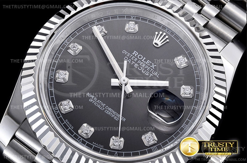 Часы Rolex из коллекции DateJust II. Классические мужские часы Rolex DateJust II 41mm 126334-0006 премиального качества (Артикул магазина: RX-0611) оснащены надежным автоматическим механизмом с автоподзаводом (работает от амплитуды движения руки) калибра 3235, в котором реализованы следующие функции: часовая, минутная и секундная стрелки, а так же дата. Круглый корпус часов стального цвета, имеющий размер 41 мм и высоту 12 мм превосходно дополнит образ и украсит запястье своего обладателя. Для изготовления часов Rolex DateJust II 41mm 126334-0006 предлагаемых в нашем интернет-магазине, применяются нержавеющая сталь 904L высокого качества (Швейцарский стандарт), а так же сапфировое стекло высокой прочности, благодаря чему обеспечивается максимальная защита от сколов и механических повреждений. Отличительной чертой данной модели является серый циферблат, часовые индексы которого обеспечивают камни. Завершает образ браслет из нержавеющей стали стального цвета с фирменной раскладывающейся застежкой Rolex. Водонепроницаемость данной модели составляет 30М (WR30) – допускается минимальное воздействие с водой.