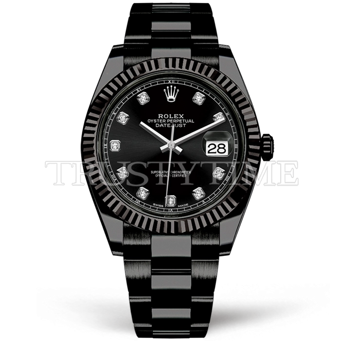 Часы Rolex из коллекции DateJust II. Классические мужские часы Rolex DateJust II 41mm 126300 премиального качества (Артикул магазина: RX-1781) оснащены надежным автоматическим механизмом с автоподзаводом (работает от амплитуды движения руки) калибра 3235, в котором реализованы следующие функции: часовая, минутная и секундная стрелки, а так же дата. Круглый корпус часов черного цвета, имеющий размер 41 мм и высоту 12 мм превосходно дополнит образ и украсит запястье своего обладателя. Для изготовления часов Rolex DateJust II 41mm 126300 предлагаемых в нашем интернет-магазине, применяются нержавеющая сталь 904L высокого качества (Швейцарский стандарт), а так же сапфировое стекло высокой прочности, благодаря чему обеспечивается максимальная защита от сколов и механических повреждений. Отличительной чертой данной модели является черный циферблат, часовые индексы которого обеспечивают камни. Завершает образ браслет из нержавеющей стали черного цвета с фирменной раскладывающейся застежкой Rolex. Водонепроницаемость данной модели составляет 30М (WR30) – допускается минимальное воздействие с водой.