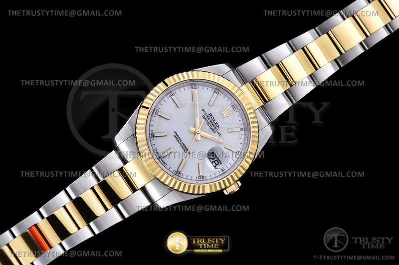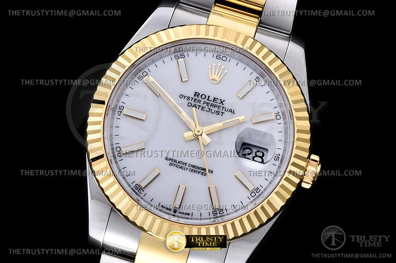 Часы Rolex из коллекции DateJust II. Классические мужские часы Rolex DateJust II 41mm 126333-0015 премиального качества (Артикул магазина: RX-1884) оснащены надежным автоматическим механизмом с автоподзаводом (работает от амплитуды движения руки) калибра 3235, в котором реализованы следующие функции: часовая, минутная и секундная стрелки, а так же дата. Круглый корпус часов комбинированного сталь с желтого золота цвета, имеющий размер 41 мм и высоту 12 мм превосходно дополнит образ и украсит запястье своего обладателя. Для изготовления часов Rolex DateJust II 41mm 126333-0015 предлагаемых в нашем интернет-магазине, применяются нержавеющая сталь 904L высокого качества (Швейцарский стандарт), а так же сапфировое стекло высокой прочности, благодаря чему обеспечивается максимальная защита от сколов и механических повреждений. Отличительной чертой данной модели является белый циферблат, часовые индексы которого обеспечивают часовые метки. Завершает образ браслет из нержавеющей стали комбинированного сталь с желтым золотом цвета с фирменной раскладывающейся застежкой Rolex. Водонепроницаемость данной модели составляет 30М (WR30) – допускается минимальное воздействие с водой.