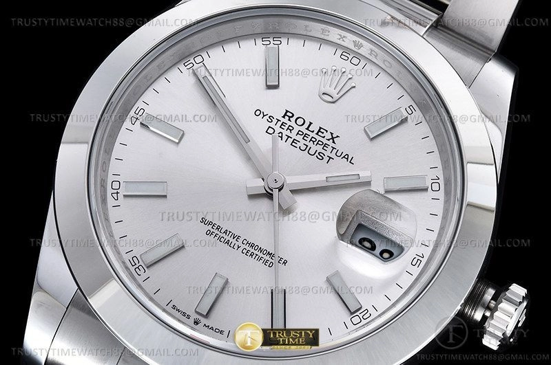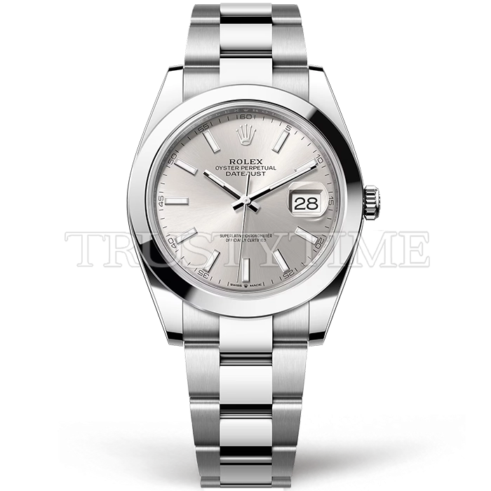 Часы Rolex из коллекции DateJust II. Классические мужские часы Rolex DateJust II 41mm 126300-0003 премиального качества (Артикул магазина: RX-2319) оснащены надежным автоматическим механизмом с автоподзаводом (работает от амплитуды движения руки) калибра 3235, в котором реализованы следующие функции: часовая, минутная и секундная стрелки, а так же дата. Круглый корпус часов стального цвета, имеющий размер 41 мм и высоту 12 мм превосходно дополнит образ и украсит запястье своего обладателя. Для изготовления часов Rolex DateJust II 41mm 126300-0003 предлагаемых в нашем интернет-магазине, применяются нержавеющая сталь 904L высокого качества (Швейцарский стандарт), а так же сапфировое стекло высокой прочности, благодаря чему обеспечивается максимальная защита от сколов и механических повреждений. Отличительной чертой данной модели является серебристый циферблат, часовые индексы которого обеспечивают часовые метки. Завершает образ браслет из нержавеющей стали стального цвета с фирменной раскладывающейся застежкой Rolex. Водонепроницаемость данной модели составляет 30М (WR30) – допускается минимальное воздействие с водой.