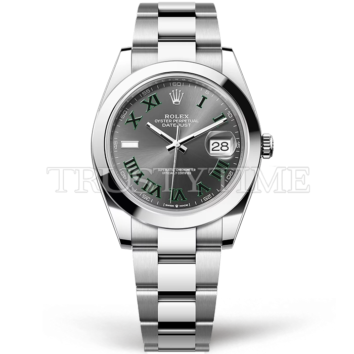 Часы Rolex из коллекции DateJust II. Классические мужские часы Rolex DateJust II 41mm 126300-0013 премиального качества (Артикул магазина: RX-2639) оснащены надежным автоматическим механизмом с автоподзаводом (работает от амплитуды движения руки) калибра 3235, в котором реализованы следующие функции: часовая, минутная и секундная стрелки, а так же дата. Круглый корпус часов стального цвета, имеющий размер 41 мм и высоту 12 мм превосходно дополнит образ и украсит запястье своего обладателя. Для изготовления часов Rolex DateJust II 41mm 126300-0013 предлагаемых в нашем интернет-магазине, применяются нержавеющая сталь 316F высокого качества (Швейцарский стандарт), а так же сапфировое стекло высокой прочности, благодаря чему обеспечивается максимальная защита от сколов и механических повреждений. Отличительной чертой данной модели является серый циферблат, часовые индексы которого обеспечивают римские цифры. Завершает образ браслет из нержавеющей стали стального цвета с фирменной раскладывающейся застежкой Rolex. Водонепроницаемость данной модели составляет 30М (WR30) – допускается минимальное воздействие с водой.