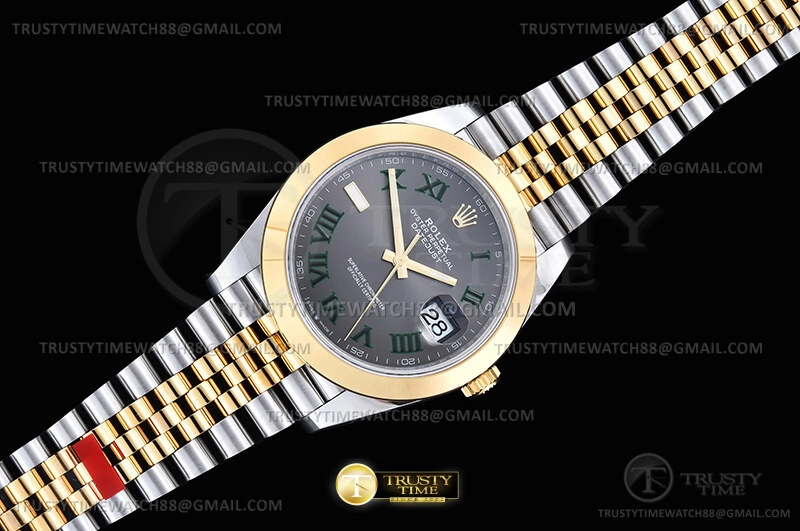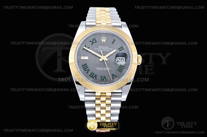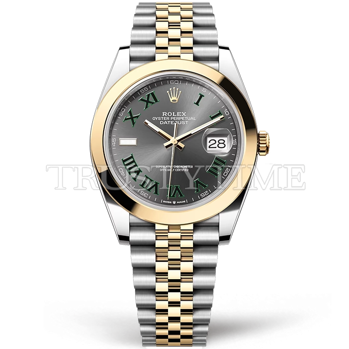 Часы Rolex из коллекции DateJust II. Классические мужские часы Rolex DateJust II 41mm 126303-0020 премиального качества (Артикул магазина: RX-2941) оснащены надежным автоматическим механизмом с автоподзаводом (работает от амплитуды движения руки) калибра 3235, в котором реализованы следующие функции: часовая, минутная и секундная стрелки, а так же дата. Круглый корпус часов комбинированного сталь с желтого золота цвета, имеющий размер 41 мм и высоту 11.6 мм превосходно дополнит образ и украсит запястье своего обладателя. Для изготовления часов Rolex DateJust II 41mm 126303-0020 предлагаемых в нашем интернет-магазине, применяются нержавеющая сталь 316F высокого качества (Швейцарский стандарт), а так же сапфировое стекло высокой прочности, благодаря чему обеспечивается максимальная защита от сколов и механических повреждений. Отличительной чертой данной модели является серый циферблат, часовые индексы которого обеспечивают римские цифры. Завершает образ браслет из нержавеющей стали комбинированного сталь с желтым золотом цвета с фирменной раскладывающейся застежкой Rolex. Водонепроницаемость данной модели составляет 30М (WR30) – допускается минимальное воздействие с водой.