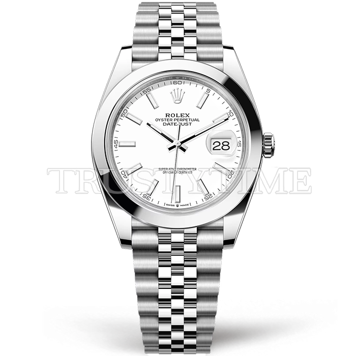 Часы Rolex из коллекции DateJust II. Классические мужские часы Rolex DateJust II 41mm 126300-0006 премиального качества (Артикул магазина: RX-2948) оснащены надежным автоматическим механизмом с автоподзаводом (работает от амплитуды движения руки) калибра 3235, в котором реализованы следующие функции: часовая, минутная и секундная стрелки, а так же дата. Круглый корпус часов стального цвета, имеющий размер 41 мм и высоту 12 мм превосходно дополнит образ и украсит запястье своего обладателя. Для изготовления часов Rolex DateJust II 41mm 126300-0006 предлагаемых в нашем интернет-магазине, применяются нержавеющая сталь 904L высокого качества (Швейцарский стандарт), а так же сапфировое стекло высокой прочности, благодаря чему обеспечивается максимальная защита от сколов и механических повреждений. Отличительной чертой данной модели является белый циферблат, часовые индексы которого обеспечивают часовые метки. Завершает образ браслет из нержавеющей стали стального цвета с фирменной раскладывающейся застежкой Rolex. Водонепроницаемость данной модели составляет 30М (WR30) – допускается минимальное воздействие с водой.