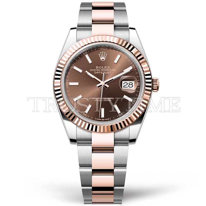 Часы Rolex из коллекции DateJust II. Классические мужские часы Rolex DateJust II 41mm 126331-0001 премиального качества (Артикул магазина: RX-2968) оснащены надежным автоматическим механизмом с автоподзаводом (работает от амплитуды движения руки) калибра 3235, в котором реализованы следующие функции: часовая, минутная и секундная стрелки, а так же дата. Круглый корпус часов комбинированного сталь с розового золота цвета, имеющий размер 41 мм и высоту 12 мм превосходно дополнит образ и украсит запястье своего обладателя. Для изготовления часов Rolex DateJust II 41mm 126331-0001 предлагаемых в нашем интернет-магазине, применяются нержавеющая сталь 316F высокого качества (Швейцарский стандарт), а так же сапфировое стекло высокой прочности, благодаря чему обеспечивается максимальная защита от сколов и механических повреждений. Отличительной чертой данной модели является коричневый циферблат, часовые индексы которого обеспечивают часовые метки. Завершает образ браслет из нержавеющей стали комбинированного сталь с розовым золотом цвета с фирменной раскладывающейся застежкой Rolex. Водонепроницаемость данной модели составляет 30М (WR30) – допускается минимальное воздействие с водой.