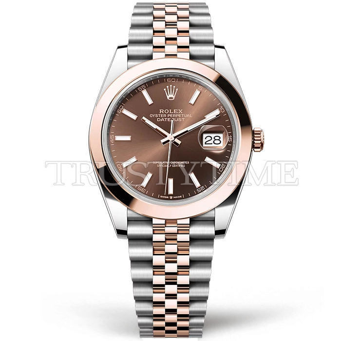 Часы Rolex из коллекции DateJust II. Классические мужские часы Rolex DateJust II 41mm 126301-0002 премиального качества (Артикул магазина: RX-2969) оснащены надежным автоматическим механизмом с автоподзаводом (работает от амплитуды движения руки) калибра 3235, в котором реализованы следующие функции: часовая, минутная и секундная стрелки, а так же дата. Круглый корпус часов комбинированного сталь с розового золота цвета, имеющий размер 41 мм и высоту 12 мм превосходно дополнит образ и украсит запястье своего обладателя. Для изготовления часов Rolex DateJust II 41mm 126301-0002 предлагаемых в нашем интернет-магазине, применяются нержавеющая сталь 316F высокого качества (Швейцарский стандарт), а так же сапфировое стекло высокой прочности, благодаря чему обеспечивается максимальная защита от сколов и механических повреждений. Отличительной чертой данной модели является коричневый циферблат, часовые индексы которого обеспечивают часовые метки. Завершает образ браслет из нержавеющей стали комбинированного сталь с розовым золотом цвета с фирменной раскладывающейся застежкой Rolex. Водонепроницаемость данной модели составляет 30М (WR30) – допускается минимальное воздействие с водой.