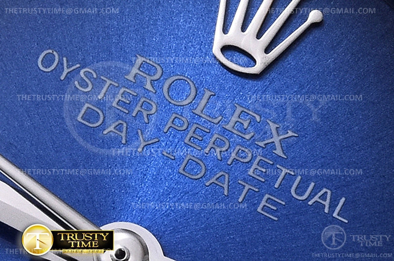 Часы Rolex из коллекции Day-Date. Классические женские часы Rolex Day-Date 36mm 128239-0023 премиального качества (Артикул магазина: RX-0894) оснащены надежным автоматическим механизмом с автоподзаводом (работает от амплитуды движения руки) калибра 3255, в котором реализованы следующие функции: часовая, минутная и секундная стрелки, а так же дата, день недели. Круглый корпус часов стального цвета, имеющий размер 36 мм и высоту 12 мм превосходно дополнит образ и украсит запястье своего обладателя. Для изготовления часов Rolex Day-Date 36mm 128239-0023 предлагаемых в нашем интернет-магазине, применяются нержавеющая сталь 904 высокого качества (Швейцарский стандарт), а так же сапфировое стекло высокой прочности, благодаря чему обеспечивается максимальная защита от сколов и механических повреждений. Отличительной чертой данной модели является синий циферблат, часовые индексы которого обеспечивают камни. Завершает образ браслет из нержавеющей стали стального цвета с фирменной раскладывающейся застежкой Rolex. Водонепроницаемость данной модели составляет 30М (WR30) – допускается минимальное воздействие с водой.