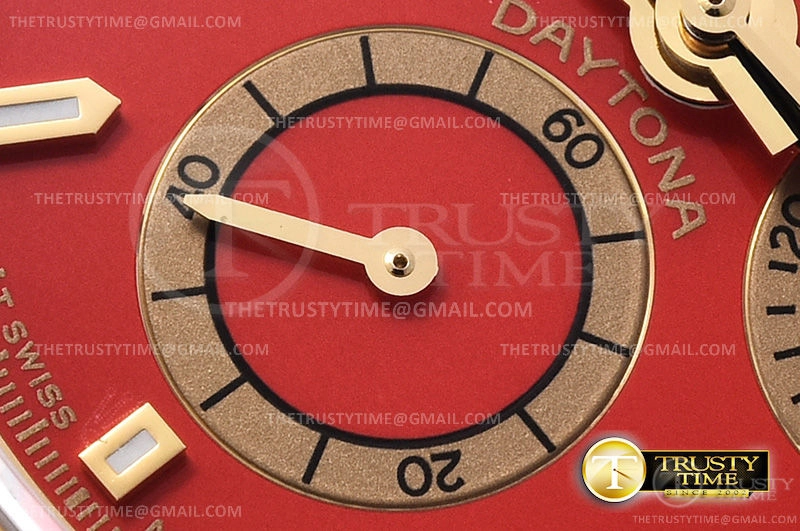 Часы Rolex из коллекции Daytona. Спортивные мужские часы Rolex Cosmograph Daytona 116508LN премиального качества (Артикул магазина: RX-1069) оснащены надежным автоматическим механизмом с автоподзаводом (работает от амплитуды движения руки) калибра 4130, в котором реализованы следующие функции: часовая, минутная и секундная стрелки, а так же хронограф. Круглый корпус часов цветы желтой золота, имеющий размер 40 мм и высоту 12.5 мм превосходно дополнит образ и украсит запястье своего обладателя. Для изготовления часов Rolex Cosmograph Daytona 116508LN предлагаемых в нашем интернет-магазине, применяются нержавеющая сталь 316F высокого качества (Швейцарский стандарт), а так же сапфировое стекло высокой прочности, благодаря чему обеспечивается максимальная защита от сколов и механических повреждений. Отличительной чертой данной модели является красный циферблат, часовые индексы которого обеспечивают часовые метки. Завершает образ браслет из нержавеющей стали цвета желтого золота с фирменной раскладывающейся застежкой Rolex. Водонепроницаемость данной модели составляет 100М (WR100) – в таких часах можно плавать и нырять без акваланга в морской и пресной воде, а также заниматься водными видами спорта.