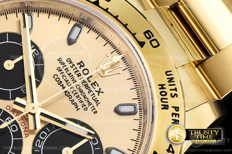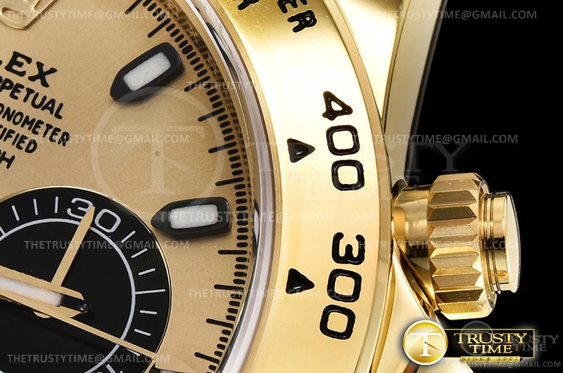 Часы Rolex из коллекции Daytona. Спортивные мужские часы Rolex Cosmograph Daytona 116508-0014 премиального качества (Артикул магазина: RX-1307) оснащены надежным автоматическим механизмом с автоподзаводом (работает от амплитуды движения руки) калибра 4130, в котором реализованы следующие функции: часовая, минутная и секундная стрелки, а так же хронограф. Круглый корпус часов цветы желтой золота, имеющий размер 40 мм и высоту 12.5 мм превосходно дополнит образ и украсит запястье своего обладателя. Для изготовления часов Rolex Cosmograph Daytona 116508-0014 предлагаемых в нашем интернет-магазине, применяются нержавеющая сталь 904L высокого качества (Швейцарский стандарт), а так же сапфировое стекло высокой прочности, благодаря чему обеспечивается максимальная защита от сколов и механических повреждений. Отличительной чертой данной модели является золотой циферблат, часовые индексы которого обеспечивают часовые метки. Завершает образ браслет из нержавеющей стали цвета желтого золота с фирменной раскладывающейся застежкой Rolex. Водонепроницаемость данной модели составляет 100М (WR100) – в таких часах можно плавать и нырять без акваланга в морской и пресной воде, а также заниматься водными видами спорта.