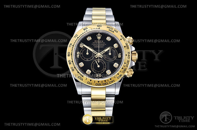Часы Rolex из коллекции Daytona. Спортивные мужские часы Rolex Cosmograph Daytona 116503-0008 премиального качества (Артикул магазина: RX-1871) оснащены надежным автоматическим механизмом с автоподзаводом (работает от амплитуды движения руки) калибра 4130, в котором реализованы следующие функции: часовая, минутная и секундная стрелки, а так же хронограф. Круглый корпус часов комбинированного сталь с желтого золота цвета, имеющий размер 40 мм и высоту 12.5 мм превосходно дополнит образ и украсит запястье своего обладателя. Для изготовления часов Rolex Cosmograph Daytona 116503-0008 предлагаемых в нашем интернет-магазине, применяются нержавеющая сталь 904L высокого качества (Швейцарский стандарт), а так же сапфировое стекло высокой прочности, благодаря чему обеспечивается максимальная защита от сколов и механических повреждений. Отличительной чертой данной модели является черный циферблат, часовые индексы которого обеспечивают камни. Завершает образ браслет из нержавеющей стали комбинированного сталь с желтым золотом цвета с фирменной раскладывающейся застежкой Rolex. Водонепроницаемость данной модели составляет 100М (WR100) – в таких часах можно плавать и нырять без акваланга в морской и пресной воде, а также заниматься водными видами спорта.
