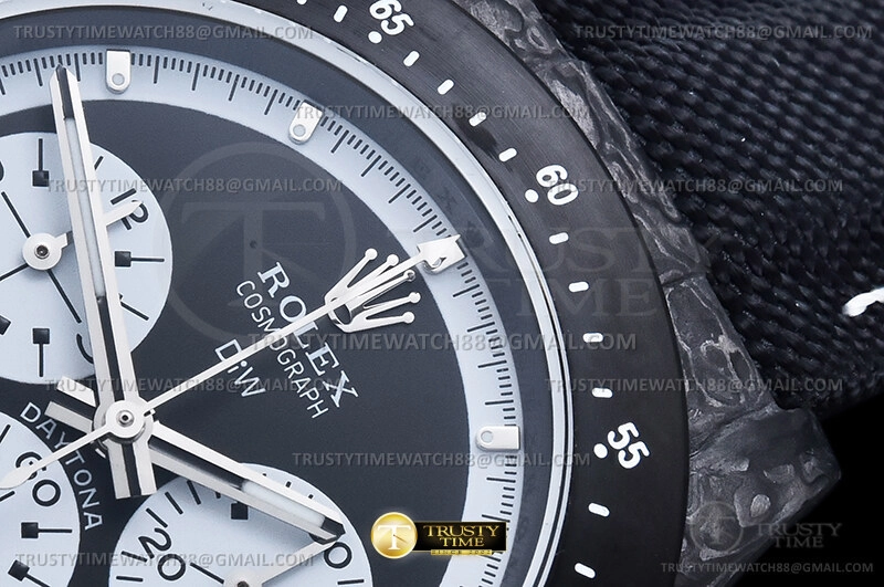 Часы Rolex из коллекции Daytona DIW. Спортивные мужские часы Rolex Cosmograph Daytona DIW Paul Newman Black DLC премиального качества (Артикул магазина: RX-3544) оснащены надежным автоматическим механизмом с автоподзаводом (работает от амплитуды движения руки) калибра 4130, в котором реализованы следующие функции: часовая, минутная и секундная стрелки, а так же хронограф. Круглый корпус часов черного цвета, имеющий размер 40 мм и высоту 12.5 мм превосходно дополнит образ и украсит запястье своего обладателя. Для изготовления часов Rolex Cosmograph Daytona DIW Paul Newman Black DLC предлагаемых в нашем интернет-магазине, применяются кованый карбон высокого качества (Швейцарский стандарт), а так же сапфировое стекло высокой прочности, благодаря чему обеспечивается максимальная защита от сколов и механических повреждений. Отличительной чертой данной модели является черный циферблат, часовые индексы которого обеспечивают часовые метки. Завершает образ нейлоновый ремешок черного цвета на липучке Rolex. Водонепроницаемость данной модели составляет 30М (WR30) – допускается минимальное воздействие с водой.