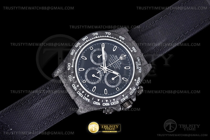 Часы Rolex из коллекции Daytona DIW. Спортивные мужские часы Rolex Cosmograph Daytona DIW All Black премиального качества (Артикул магазина: RX-2298) оснащены надежным автоматическим механизмом с автоподзаводом (работает от амплитуды движения руки) калибра 4130, в котором реализованы следующие функции: часовая, минутная и секундная стрелки, а так же хронограф. Круглый корпус часов черного цвета, имеющий размер 40 мм и высоту 12.5 мм превосходно дополнит образ и украсит запястье своего обладателя. Для изготовления часов Rolex Cosmograph Daytona DIW All Black предлагаемых в нашем интернет-магазине, применяются кованый карбон высокого качества (Швейцарский стандарт), а так же сапфировое стекло высокой прочности, благодаря чему обеспечивается максимальная защита от сколов и механических повреждений. Отличительной чертой данной модели является черный циферблат, часовые индексы которого обеспечивают часовые метки. Завершает образ нейлоновый ремешок черного цвета на липучке Rolex. Водонепроницаемость данной модели составляет 30М (WR30) – допускается минимальное воздействие с водой.