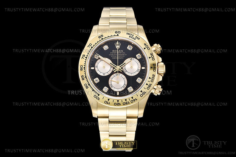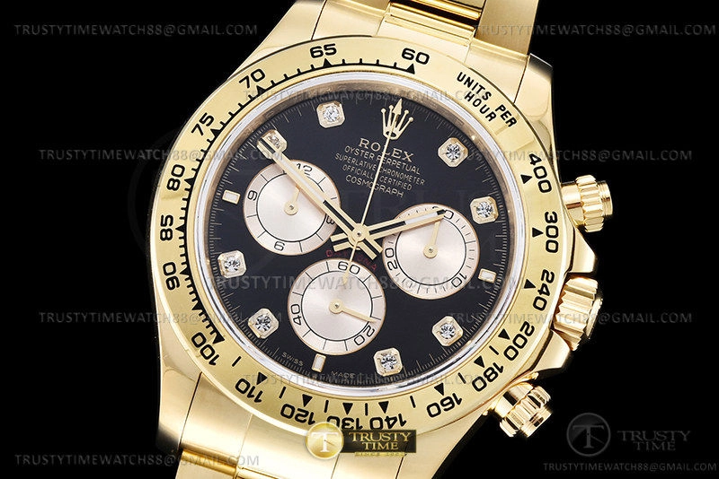 Часы Rolex из коллекции Daytona. Спортивные мужские часы Rolex Cosmograph Daytona 126508-0003 премиального качества (Артикул магазина: RX-3407) оснащены надежным автоматическим механизмом с автоподзаводом (работает от амплитуды движения руки) калибра 4131, в котором реализованы следующие функции: часовая, минутная и секундная стрелки, а так же хронограф. Круглый корпус часов цветы желтой золота, имеющий размер 40 мм и высоту 12 мм превосходно дополнит образ и украсит запястье своего обладателя. Для изготовления часов Rolex Cosmograph Daytona 126508-0003 предлагаемых в нашем интернет-магазине, применяются нержавеющая сталь 904L высокого качества (Швейцарский стандарт), а так же сапфировое стекло высокой прочности, благодаря чему обеспечивается максимальная защита от сколов и механических повреждений. Отличительной чертой данной модели является черный циферблат, часовые индексы которого обеспечивают камни. Завершает образ браслет из нержавеющей стали цвета желтого золота с фирменной раскладывающейся застежкой Rolex. Водонепроницаемость данной модели составляет 100М (WR100) – в таких часах можно плавать и нырять без акваланга в морской и пресной воде, а также заниматься водными видами спорта.
