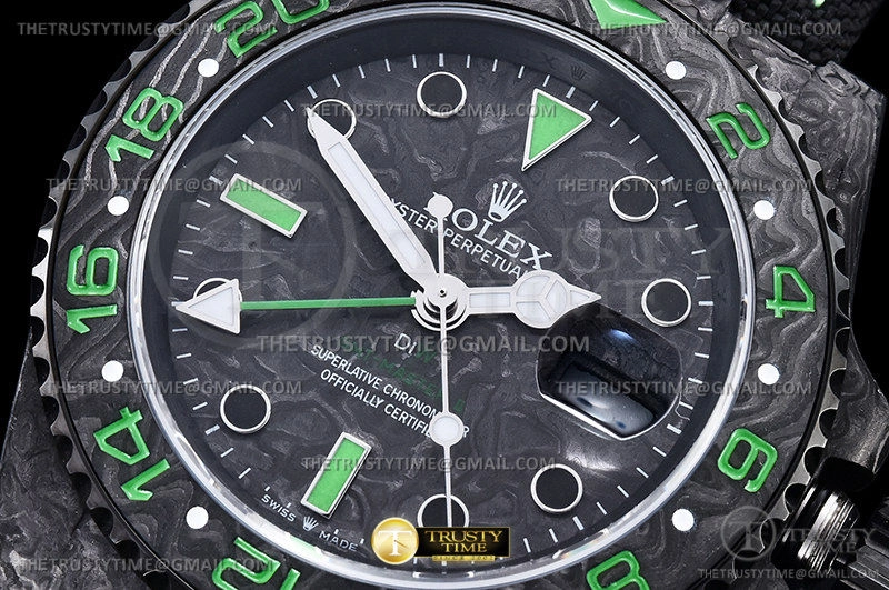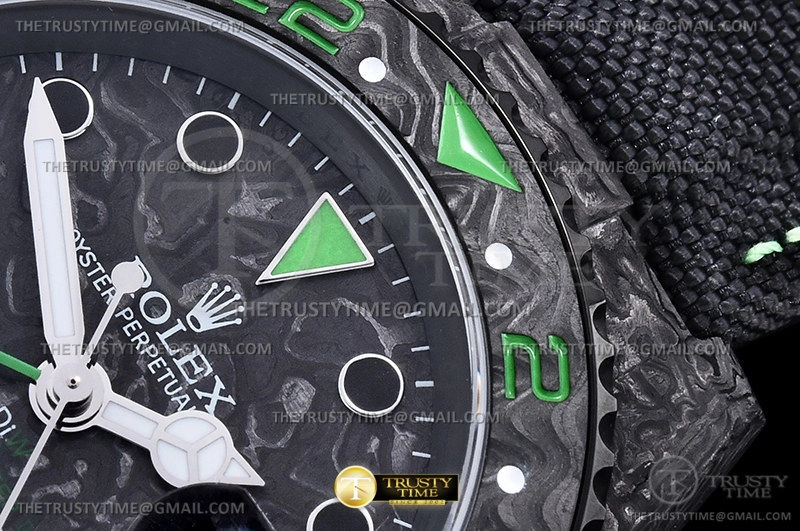 Часы Rolex из коллекции GMT Master II DIW. Спортивные мужские часы Rolex GMT Master II DIW Stinger премиального качества (Артикул магазина: RX-2036) оснащены надежным автоматическим механизмом с автоподзаводом (работает от амплитуды движения руки) калибра 3186, в котором реализованы следующие функции: часовая, минутная и секундная стрелки, а так же дата, двойное время (GMT). Круглый корпус часов черного цвета, имеющий размер 40 мм и высоту 12 мм превосходно дополнит образ и украсит запястье своего обладателя. Для изготовления часов Rolex GMT Master II DIW Stinger предлагаемых в нашем интернет-магазине, применяются кованый карбон высокого качества (Швейцарский стандарт), а так же сапфировое стекло высокой прочности, благодаря чему обеспечивается максимальная защита от сколов и механических повреждений. Отличительной чертой данной модели является черный циферблат, часовые индексы которого обеспечивают часовые метки. Завершает образ нейлоновый ремешок черного цвета на липучке Rolex. Водонепроницаемость данной модели составляет 30М (WR30) – допускается минимальное воздействие с водой.