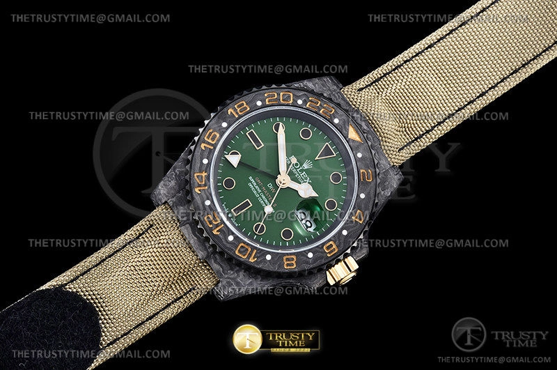 Часы Rolex из коллекции GMT Master II DIW. Спортивные мужские часы Rolex GMT Master II DIW Hunter премиального качества (Артикул магазина: RX-2032) оснащены надежным автоматическим механизмом с автоподзаводом (работает от амплитуды движения руки) калибра 3186, в котором реализованы следующие функции: часовая, минутная и секундная стрелки, а так же дата, двойное время (GMT). Круглый корпус часов черного цвета, имеющий размер 40 мм и высоту 12 мм превосходно дополнит образ и украсит запястье своего обладателя. Для изготовления часов Rolex GMT Master II DIW Hunter предлагаемых в нашем интернет-магазине, применяются кованый карбон высокого качества (Швейцарский стандарт), а так же сапфировое стекло высокой прочности, благодаря чему обеспечивается максимальная защита от сколов и механических повреждений. Отличительной чертой данной модели является зеленый циферблат, часовые индексы которого обеспечивают часовые метки. Завершает образ нейлоновый ремешок зеленого цвета на липучке Rolex. Водонепроницаемость данной модели составляет 30М (WR30) – допускается минимальное воздействие с водой.