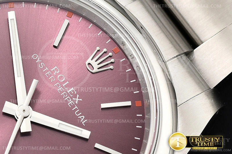 Часы Rolex из коллекции Oyster Perpetual. Классические мужские часы Rolex Oyster Perpetual 39mm 114300-0002 премиального качества (Артикул магазина: RX-1423) оснащены надежным автоматическим механизмом с автоподзаводом (работает от амплитуды движения руки) калибра 3132, в котором реализованы следующие функции: часовая, минутная и секундная стрелки, а так же максимально простой функционал без усложнений. Круглый корпус часов стального цвета, имеющий размер 39 мм и высоту 11 мм превосходно дополнит образ и украсит запястье своего обладателя. Для изготовления часов Rolex Oyster Perpetual 39mm 114300-0002 предлагаемых в нашем интернет-магазине, применяются нержавеющая сталь 904L высокого качества (Швейцарский стандарт), а так же сапфировое стекло высокой прочности, благодаря чему обеспечивается максимальная защита от сколов и механических повреждений. Отличительной чертой данной модели является фиолетовый циферблат, часовые индексы которого обеспечивают часовые метки. Завершает образ браслет из нержавеющей стали стального цвета с фирменной раскладывающейся застежкой Rolex. Водонепроницаемость данной модели составляет 30М (WR30) – допускается минимальное воздействие с водой.