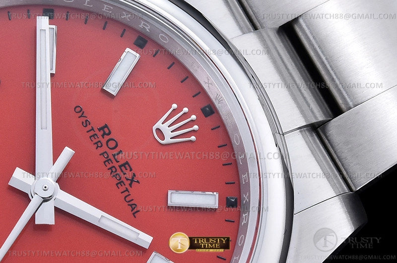 Часы Rolex из коллекции Oyster Perpetual. Классические мужские часы Rolex Oyster Perpetual 41mm 124300-0007 премиального качества (Артикул магазина: RX-1736) оснащены надежным автоматическим механизмом с автоподзаводом (работает от амплитуды движения руки) калибра 3230, в котором реализованы следующие функции: часовая, минутная и секундная стрелки, а так же максимально простой функционал без усложнений. Круглый корпус часов стального цвета, имеющий размер 41 мм и высоту 12 мм превосходно дополнит образ и украсит запястье своего обладателя. Для изготовления часов Rolex Oyster Perpetual 41mm 124300-0007 предлагаемых в нашем интернет-магазине, применяются нержавеющая сталь 904L высокого качества (Швейцарский стандарт), а так же сапфировое стекло высокой прочности, благодаря чему обеспечивается максимальная защита от сколов и механических повреждений. Отличительной чертой данной модели является красный циферблат, часовые индексы которого обеспечивают часовые метки. Завершает образ браслет из нержавеющей стали стального цвета с фирменной раскладывающейся застежкой Rolex. Водонепроницаемость данной модели составляет 30М (WR30) – допускается минимальное воздействие с водой.