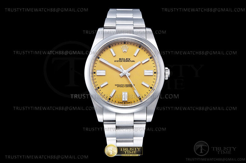 Часы Rolex из коллекции Oyster Perpetual. Классические женские часы Rolex Oyster Perpetual 36mm 126000-0004 премиального качества (Артикул магазина: RX-1862) оснащены надежным автоматическим механизмом с автоподзаводом (работает от амплитуды движения руки) калибра 3230, в котором реализованы следующие функции: часовая, минутная и секундная стрелки, а так же максимально простой функционал без усложнений. Круглый корпус часов стального цвета, имеющий размер 36 мм и высоту 12 мм превосходно дополнит образ и украсит запястье своего обладателя. Для изготовления часов Rolex Oyster Perpetual 36mm 126000-0004 предлагаемых в нашем интернет-магазине, применяются нержавеющая сталь 904L высокого качества (Швейцарский стандарт), а так же сапфировое стекло высокой прочности, благодаря чему обеспечивается максимальная защита от сколов и механических повреждений. Отличительной чертой данной модели является желтый циферблат, часовые индексы которого обеспечивают часовые метки. Завершает образ браслет из нержавеющей стали стального цвета с фирменной раскладывающейся застежкой Rolex. Водонепроницаемость данной модели составляет 30М (WR30) – допускается минимальное воздействие с водой.