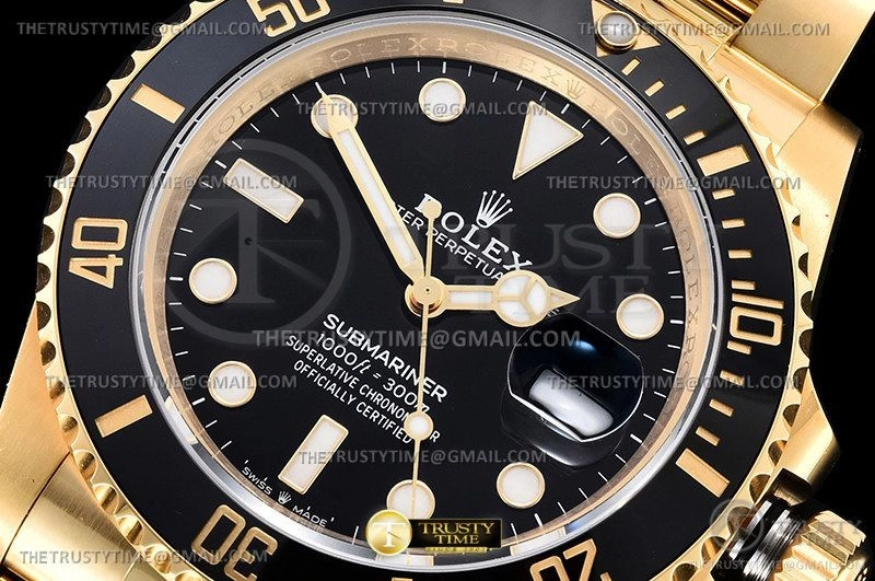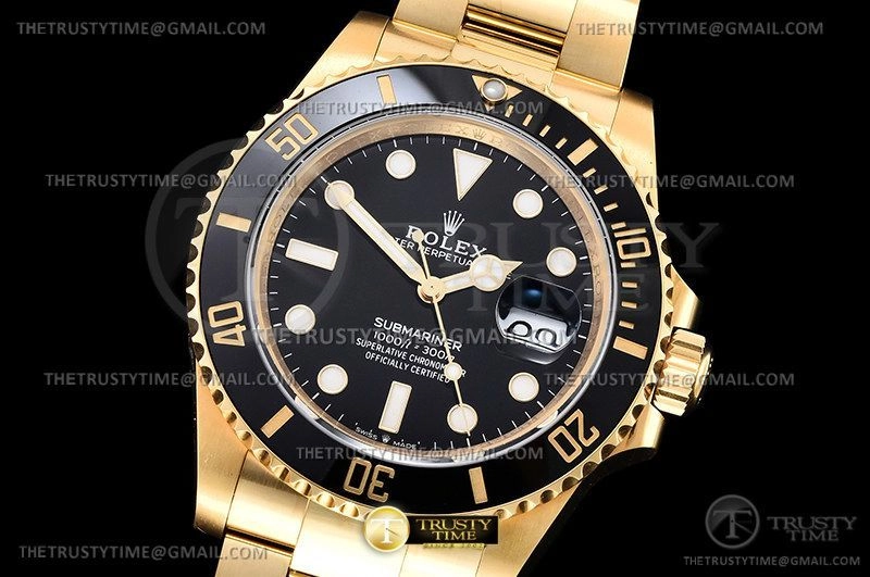 Часы Rolex из коллекции Submariner. Классические мужские часы Rolex Submariner 41mm 126618LN-0002 премиального качества (Артикул магазина: RX-2250) оснащены надежным автоматическим механизмом с автоподзаводом (работает от амплитуды движения руки) калибра 3235, в котором реализованы следующие функции: часовая, минутная и секундная стрелки, а так же дата. Круглый корпус часов цветы желтой золота, имеющий размер 41 мм и высоту 13 мм превосходно дополнит образ и украсит запястье своего обладателя. Для изготовления часов Rolex Submariner 41mm 126618LN-0002 предлагаемых в нашем интернет-магазине, применяются нержавеющая сталь 904L высокого качества (Швейцарский стандарт), а так же сапфировое стекло высокой прочности, благодаря чему обеспечивается максимальная защита от сколов и механических повреждений. Отличительной чертой данной модели является черный циферблат, часовые индексы которого обеспечивают часовые метки. Завершает образ браслет из нержавеющей стали цвета желтого золота с фирменной раскладывающейся застежкой Rolex. Водонепроницаемость данной модели составляет 100М (WR100) – в таких часах можно плавать и нырять без акваланга в морской и пресной воде, а также заниматься водными видами спорта.