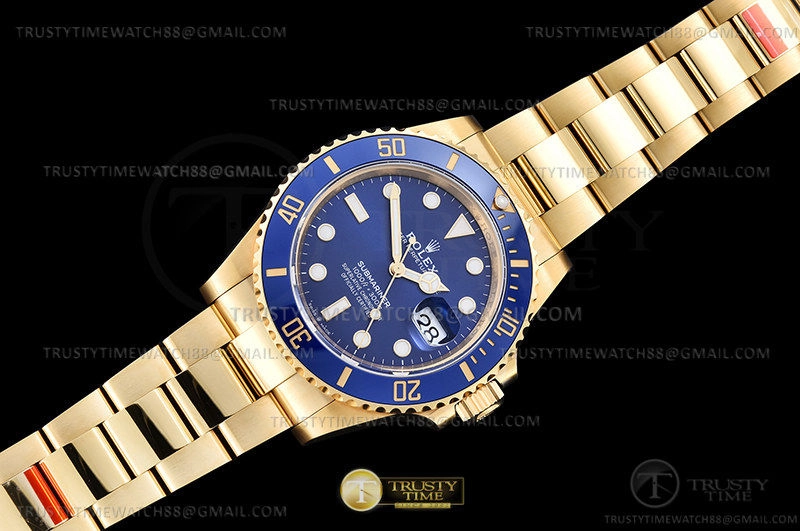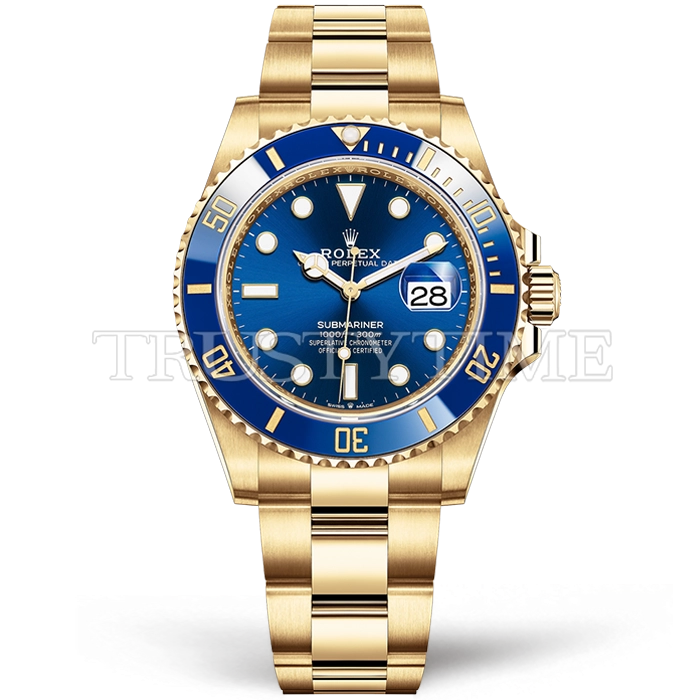 Часы Rolex из коллекции Submariner. Классические мужские часы Rolex Submariner 41mm 126618LB-0002 премиального качества (Артикул магазина: RX-2835) оснащены надежным автоматическим механизмом с автоподзаводом (работает от амплитуды движения руки) калибра 3235, в котором реализованы следующие функции: часовая, минутная и секундная стрелки, а так же дата. Круглый корпус часов цветы желтой золота, имеющий размер 41 мм и высоту 13 мм превосходно дополнит образ и украсит запястье своего обладателя. Для изготовления часов Rolex Submariner 41mm 126618LB-0002 предлагаемых в нашем интернет-магазине, применяются нержавеющая сталь 904L высокого качества (Швейцарский стандарт), а так же сапфировое стекло высокой прочности, благодаря чему обеспечивается максимальная защита от сколов и механических повреждений. Отличительной чертой данной модели является синий циферблат, часовые индексы которого обеспечивают часовые метки. Завершает образ браслет из нержавеющей стали цвета желтого золота с фирменной раскладывающейся застежкой Rolex. Водонепроницаемость данной модели составляет 100М (WR100) – в таких часах можно плавать и нырять без акваланга в морской и пресной воде, а также заниматься водными видами спорта.