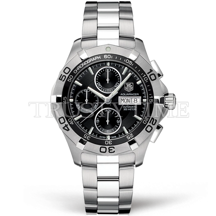 Часы Tag Heuer из коллекции Aquaracer Calibre 16. Спортивные мужские часы Tag Heuer Aquaracer 300M Calibre 16 Day-Date 43mm CAF2010.BA0815 премиального качества (Артикул магазина: TG-0304) оснащены надежным автоматическим механизмом с автоподзаводом (работает от амплитуды движения руки) калибра Valjoux-7750, в котором реализованы следующие функции: часовая, минутная и секундная стрелки, а так же дата, день недели, хронограф. Круглый корпус часов стального цвета, имеющий размер 43 мм и высоту 14.5 мм превосходно дополнит образ и украсит запястье своего обладателя. Для изготовления часов Tag Heuer Aquaracer 300M Calibre 16 Day-Date 43mm CAF2010.BA0815 предлагаемых в нашем интернет-магазине, применяются нержавеющая сталь 316L высокого качества (Швейцарский стандарт), а так же сапфировое стекло высокой прочности, благодаря чему обеспечивается максимальная защита от сколов и механических повреждений. Отличительной чертой данной модели является белый циферблат, часовые индексы которого обеспечивают часовые метки. Завершает образ браслет из нержавеющей стали стального цвета с фирменной раскладывающейся застежкой Tag Heuer. Водонепроницаемость данной модели составляет 30М (WR30) – допускается минимальное воздействие с водой.
