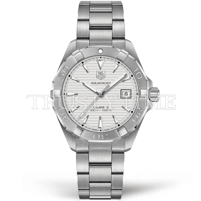 Часы Tag Heuer из коллекции Aquaracer Calibre 5. Классические мужские часы Tag Heuer Aquaracer 300M Calibre 5 41mm WAY2111.BA0928 премиального качества (Артикул магазина: TG-0376) оснащены надежным автоматическим механизмом с автоподзаводом (работает от амплитуды движения руки) калибра Sellita SW200, в котором реализованы следующие функции: часовая, минутная и секундная стрелки, а так же дата. Круглый корпус часов стального цвета, имеющий размер 41 мм и высоту 12 мм превосходно дополнит образ и украсит запястье своего обладателя. Для изготовления часов Tag Heuer Aquaracer 300M Calibre 5 41mm WAY2111.BA0928 предлагаемых в нашем интернет-магазине, применяются нержавеющая сталь 316L высокого качества (Швейцарский стандарт), а так же сапфировое стекло высокой прочности, благодаря чему обеспечивается максимальная защита от сколов и механических повреждений. Отличительной чертой данной модели является белый циферблат, часовые индексы которого обеспечивают часовые метки. Завершает образ браслет из нержавеющей стали стального цвета с фирменной раскладывающейся застежкой Tag Heuer. Водонепроницаемость данной модели составляет 30М (WR30) – допускается минимальное воздействие с водой.